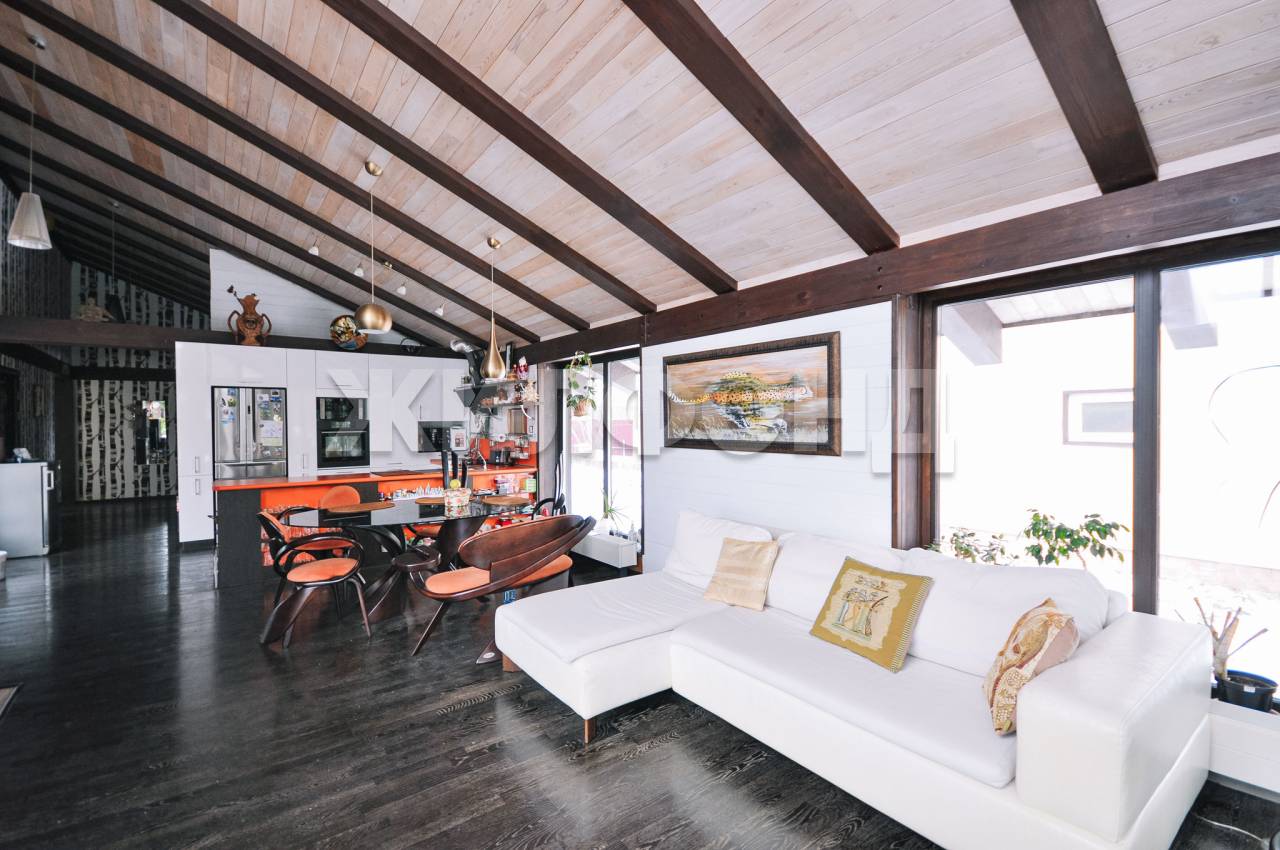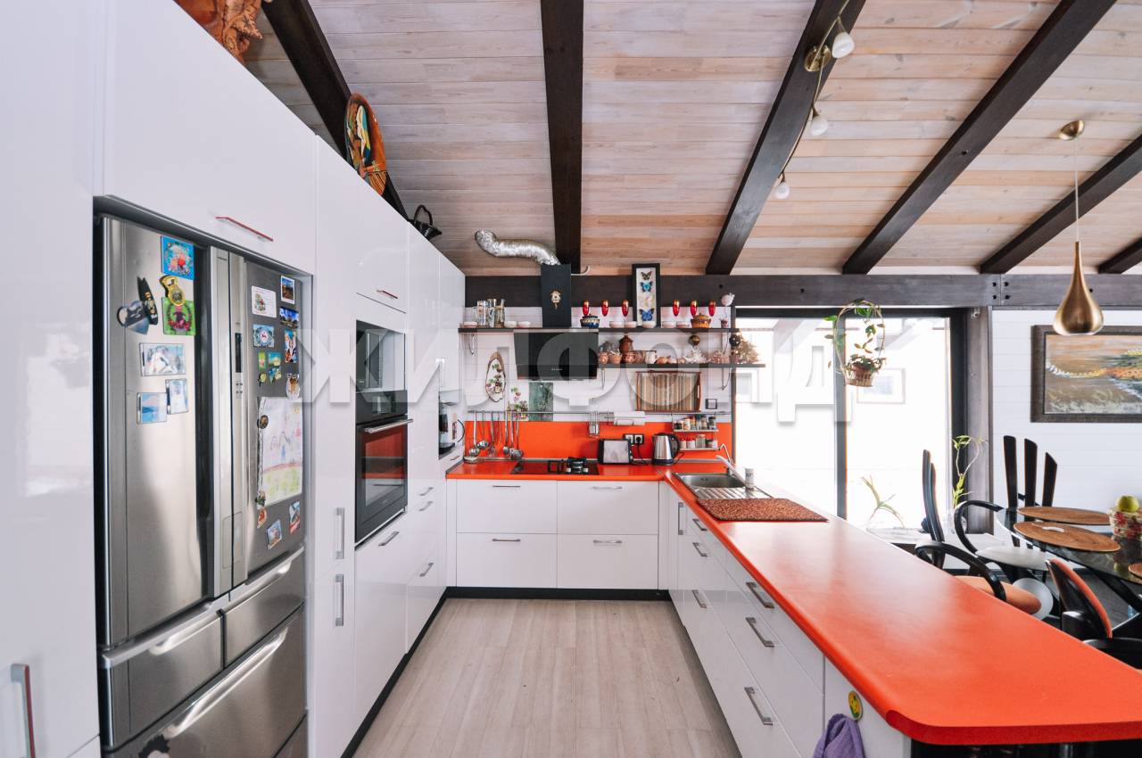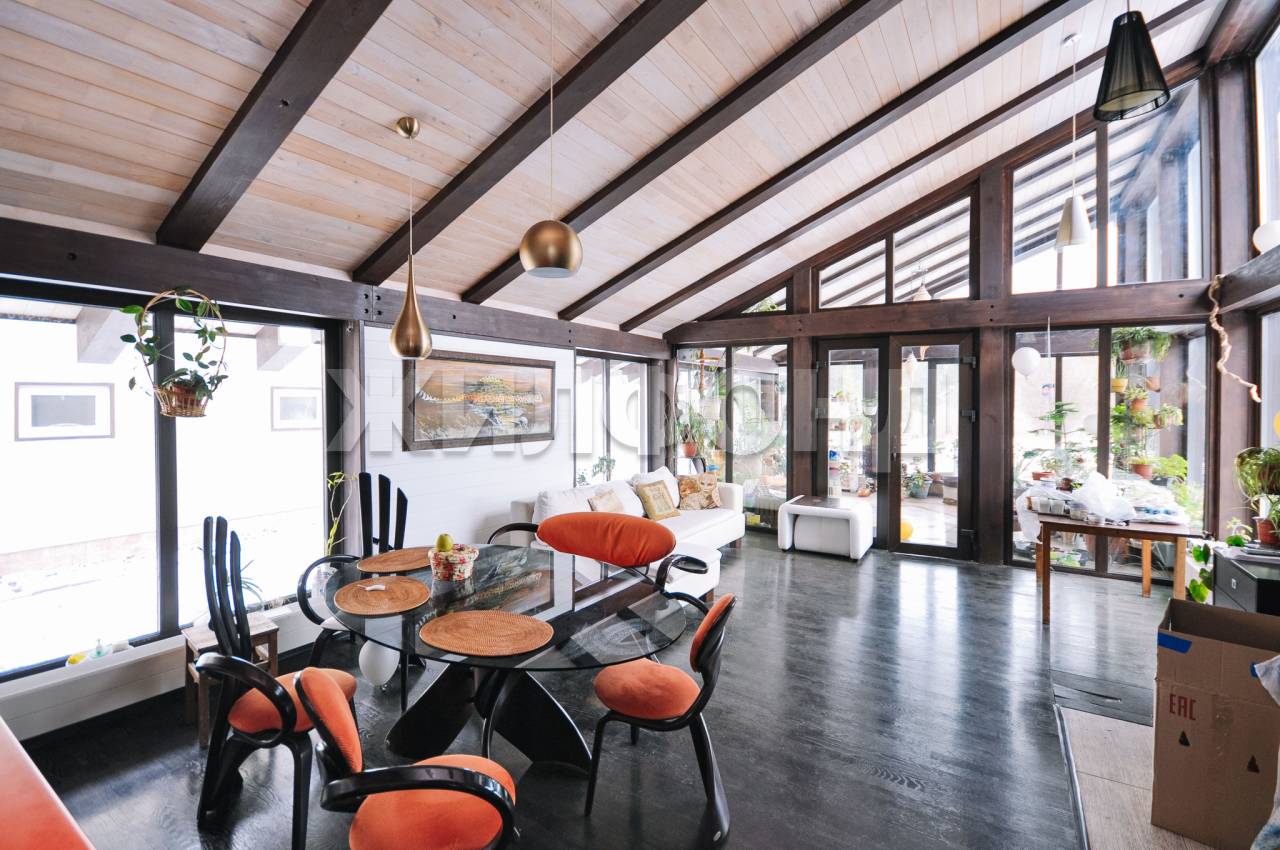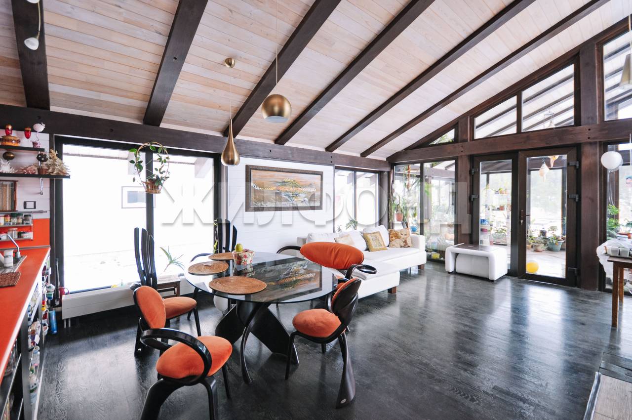 Одноэтажный. Конструктивное исполнение типа фахверк: каркас из клеёного бруса, фасад из искусственного японского камня. Крыша вентилируемая с мягким покрытием шинглас. Дом с цокольным этажом, который при желании можно использовать в качестве бомбоубежища. Общая площадь 388 кв.м. Приятный бонус покупателю - вся мебель и техника остается новым владельцам. Есть газгольдер.