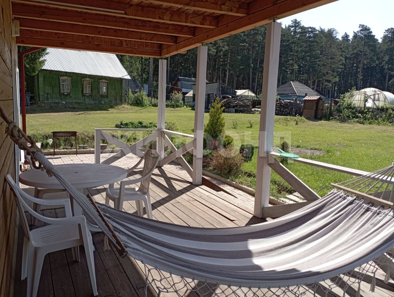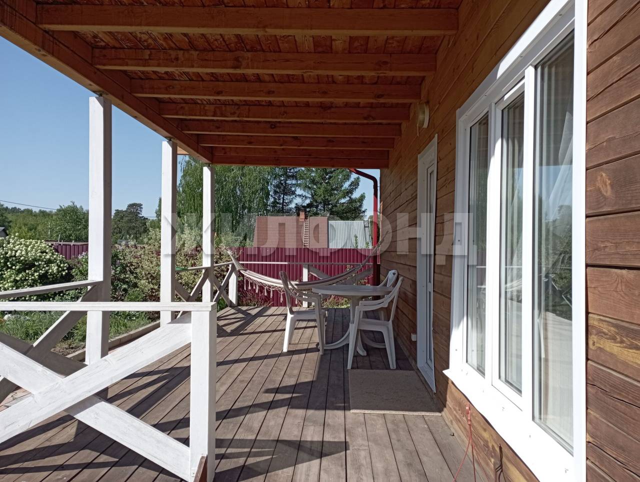 Теплый дом из 150-го бруса. В доме большой зал с кухонной зоной и выходом на террасу. На первом этаже-зал, баня на дровах и комната отдыха, на втором - большой холл и две спальни с выходом на балкон. Вода, канализация - местные, отопление от электрокотла, разводка отопления по всему дому.