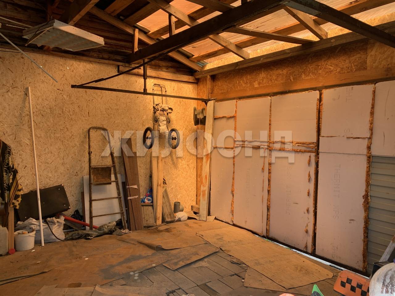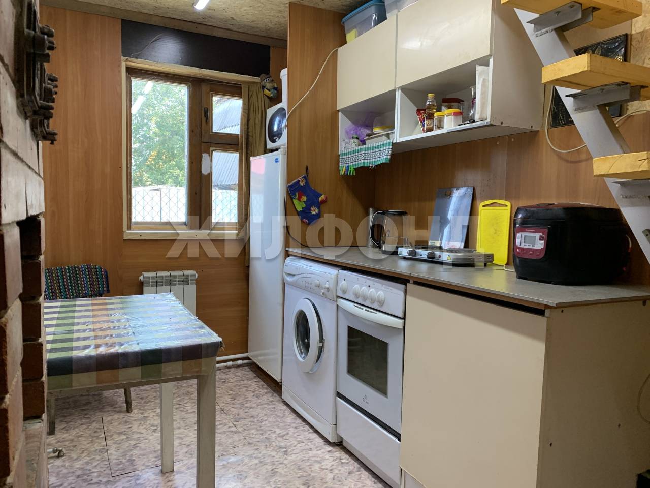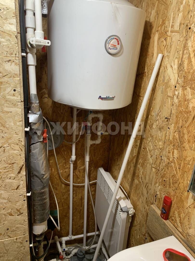 Дом прочный, теплый, построен по каркасной технологии. На первом этаже комната, кухня, санузел, прихожая. Второй этаж под самоотделку (17 кв.м.). На кухне вместительный погреб. К дому пристроены терраса и гараж. Есть баня и хозпостройки. Вода центральная, отопление - электрокотел, есть печь.