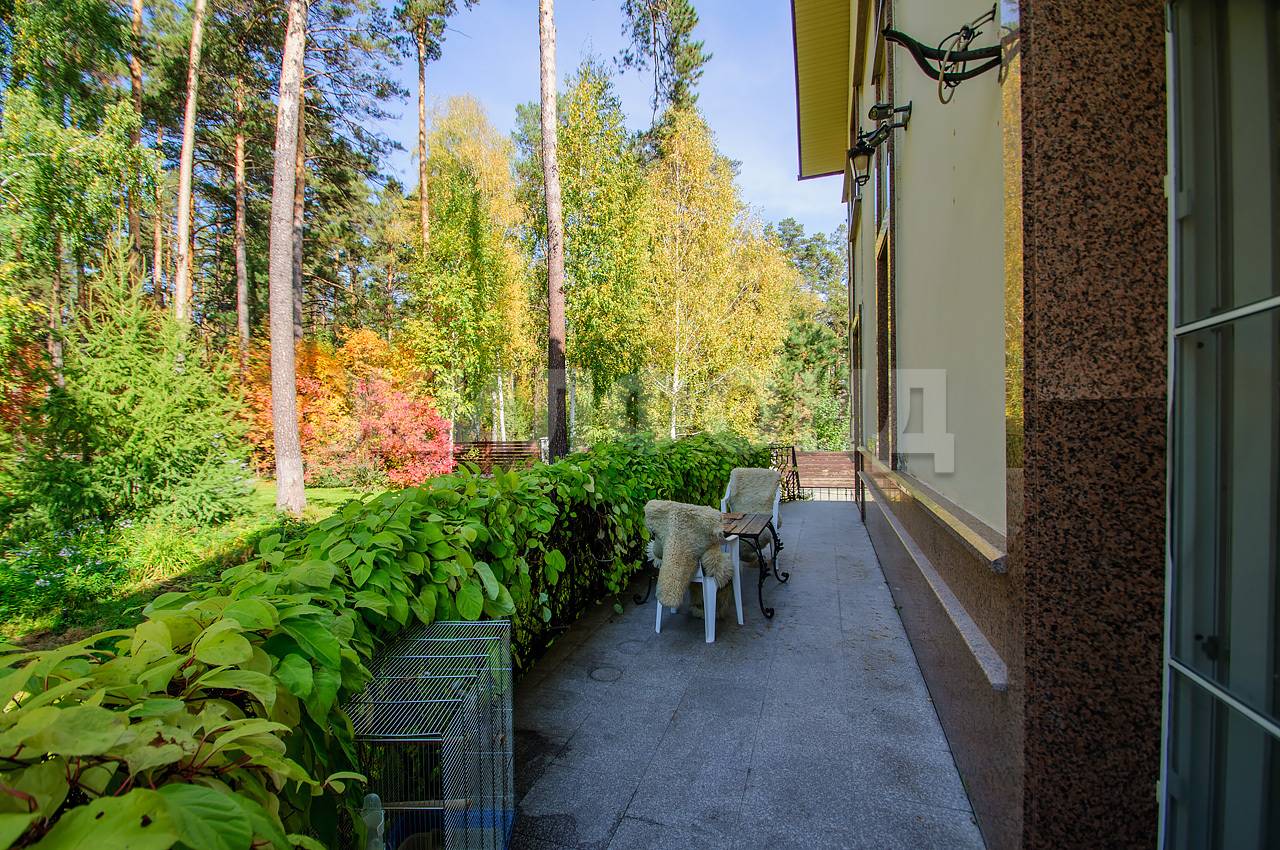 На территории сделан ландшафтный дизайн, посажены крупноразмерные пихты, проведен автополив, уложен рулонный газон, дорожки вымощены тротуарной плиткой. За домом располагается дополнительно 20 соток леса находящегося в аренде и собственный выход в лес.