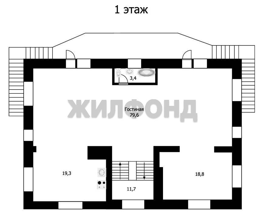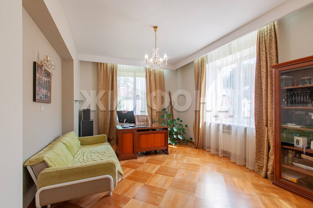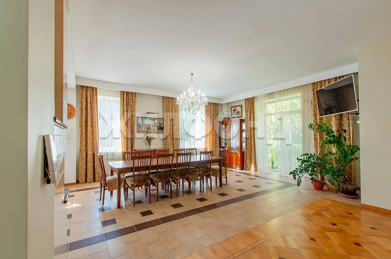 На 1 этаже 132 м2 расположена просторная кухня с обеденной зоной и гостиная объединенные в единое пространство с выходом на балкон и видом на ухоженный участок и лес, также на этаже расположен кабинет и с.у.