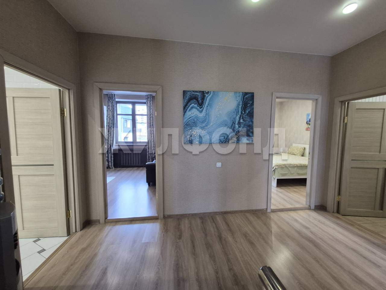 Кухня-гостиная, холл, 3 спальни, 2 санузла, хозкомната.