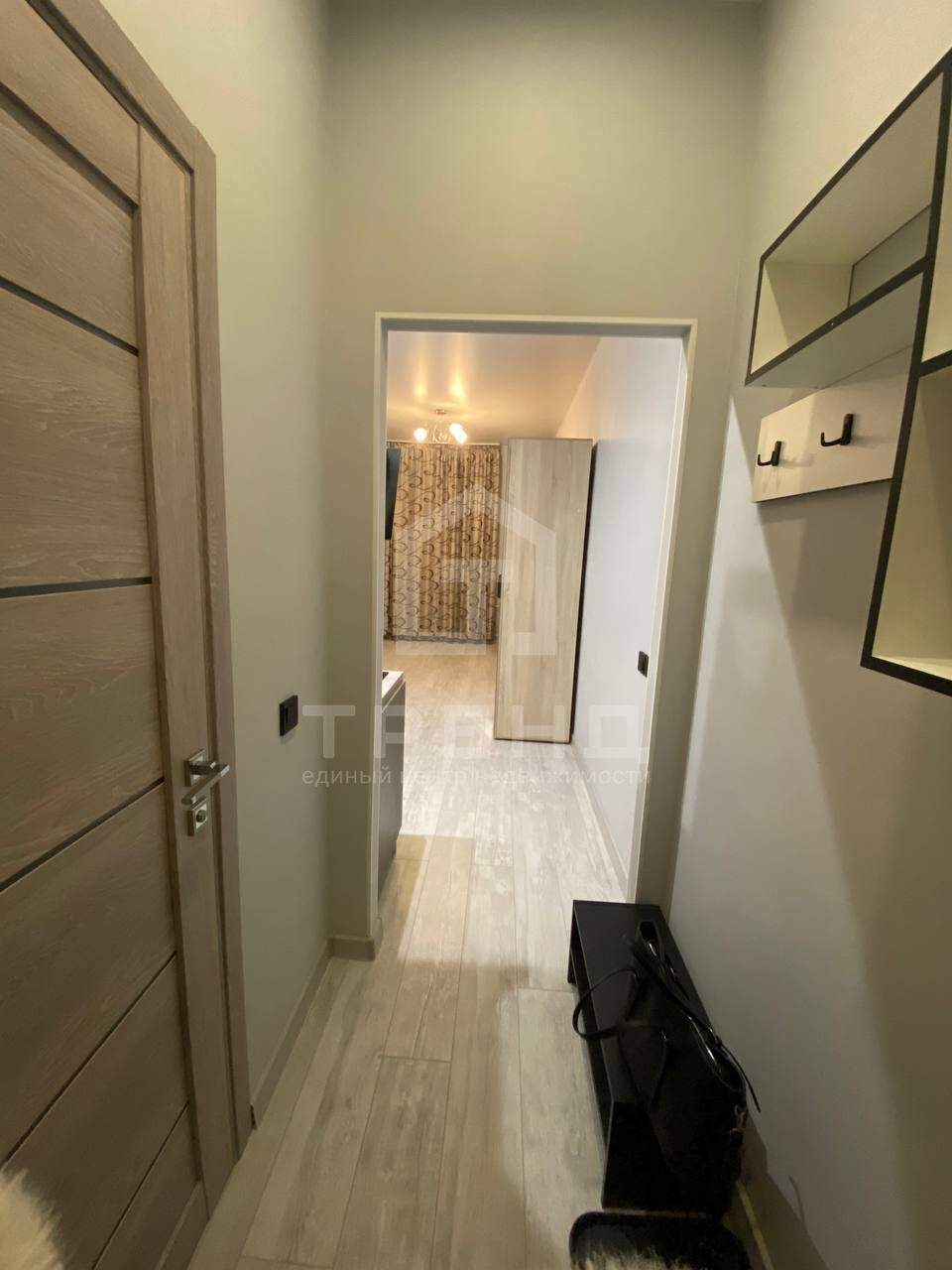 Современная студия 20.1 м: Умная планировка с выделенной зоной для кровати, что выгодно отличает ее от типовых «квадратов». Высокие потолки 2,7, которые делают пространство светлым и визуально более просторным.