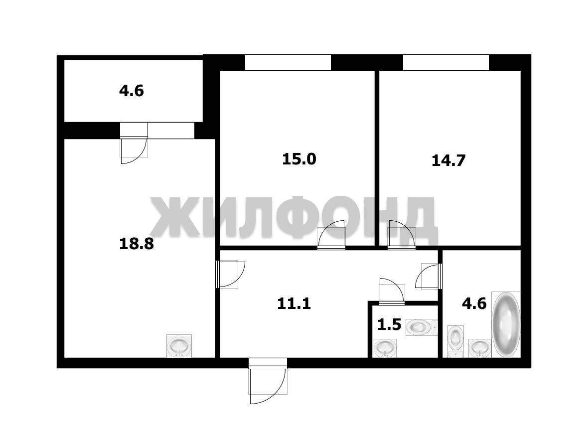 3 комн. квартира по ул. Никольский проспект. Общей площадью: 65.80 кв.м.