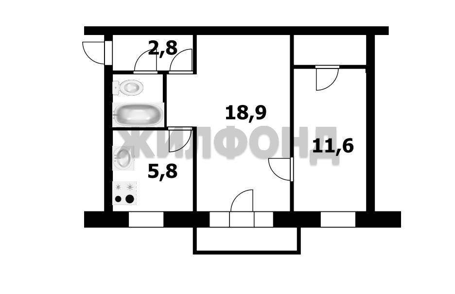 2 комн. квартира по ул. Есенина. Общей площадью: 45.10 кв.м.