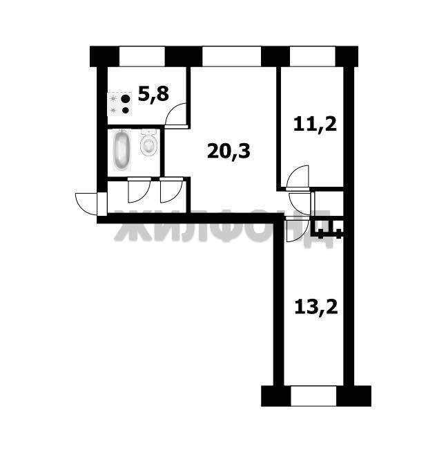 3 комн. квартира по ул. Академическая. Общей площадью: 58.30 кв.м.