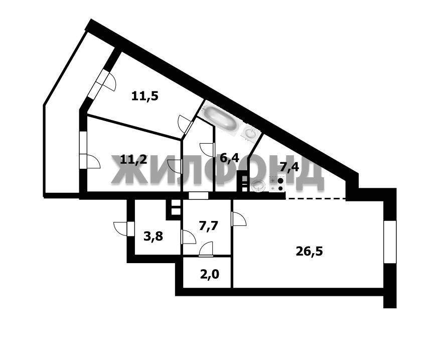 Площадь квартиры 76,5 м2 + лоджия 8,6 м2.