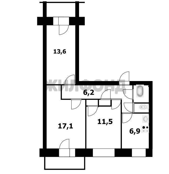 Продается типовая трехкомнатная квартира в городе Новосибирск на улице Железнодорожная, дом 20. Общая площадь квартиры составляет 62.4 кв.м. , находится на 4 этаже 9-этажного дома.