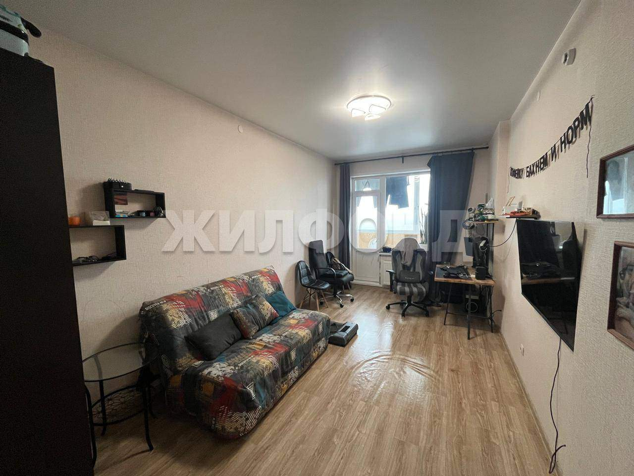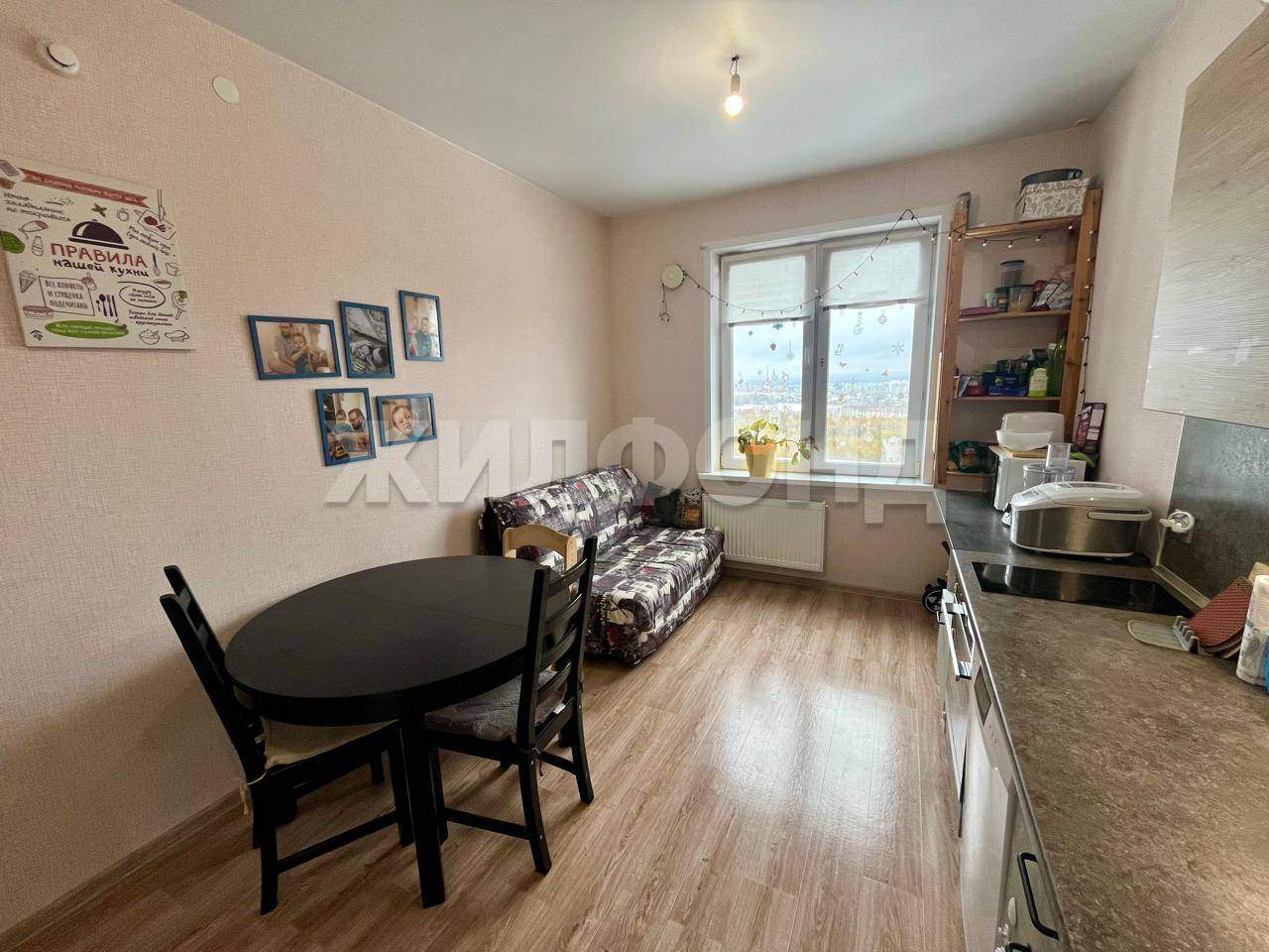 В квартире остается кухонный гарнитур, шкаф-купе, диван.