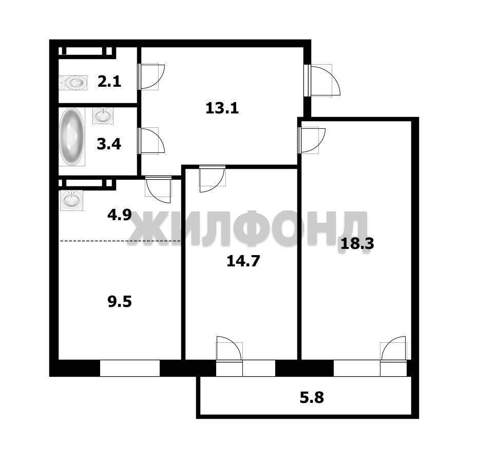 Комнаты изолированные, санузел раздельный, большой застекленный балкон 5,8 кв. м. , со стеллажами для хранения.