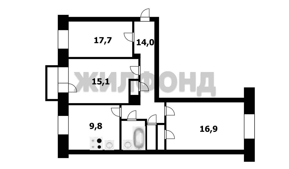 3 комн. квартира по ул. Трикотажная. Общей площадью: 80.70 кв.м.