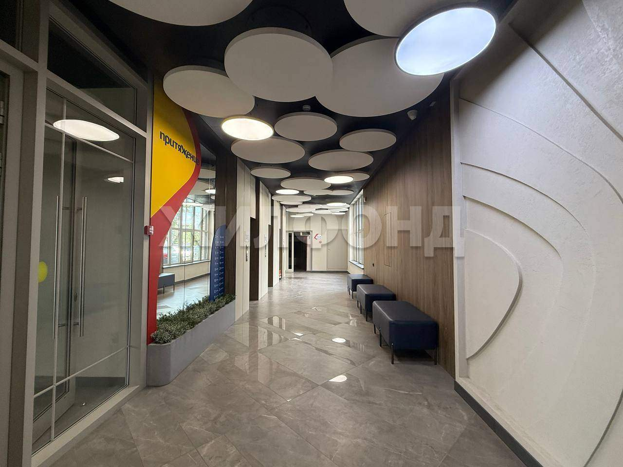 Светлые холлы с витражным остеклением.