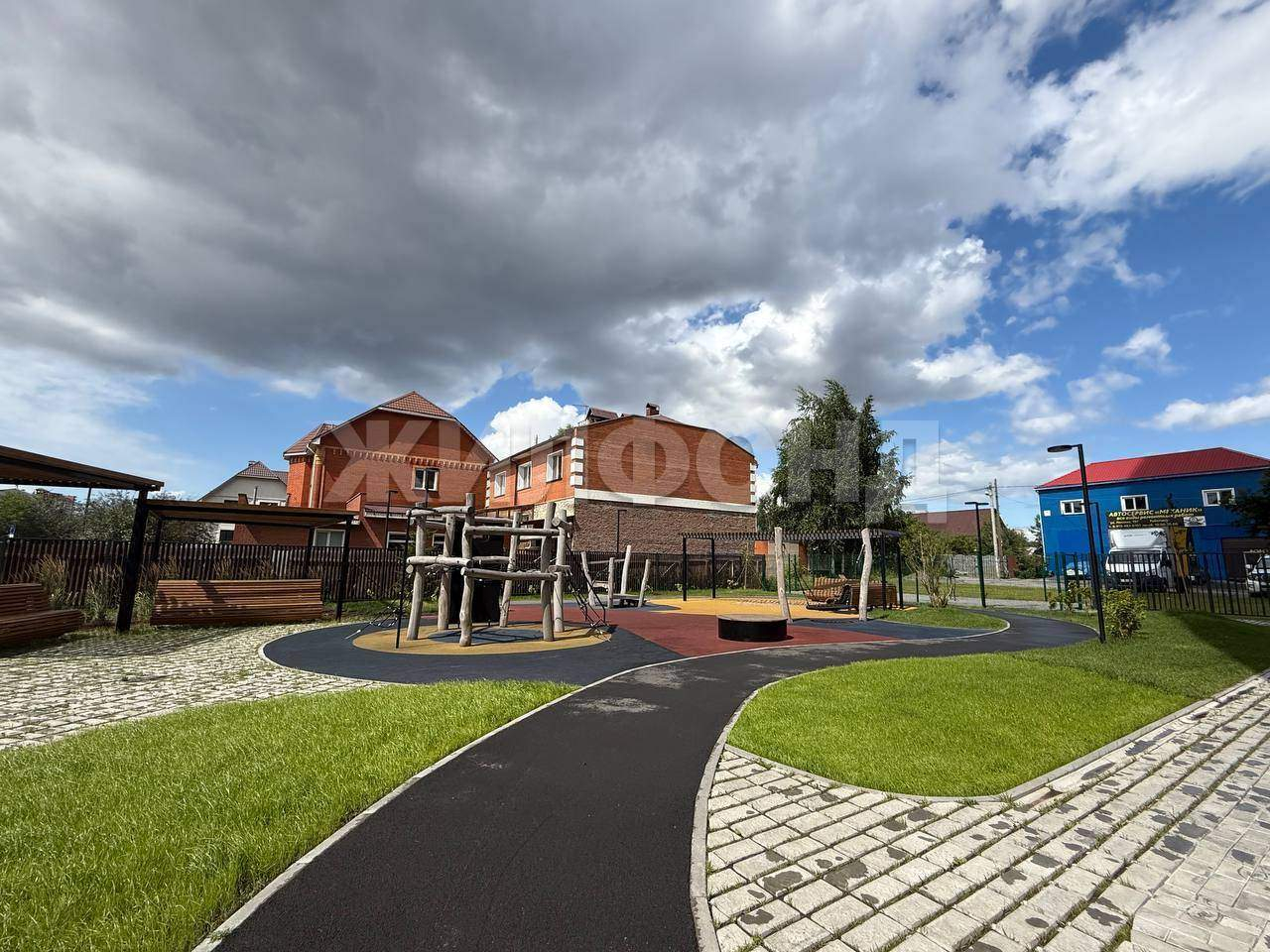 Двор оборудован благоустроенной детской площадкой