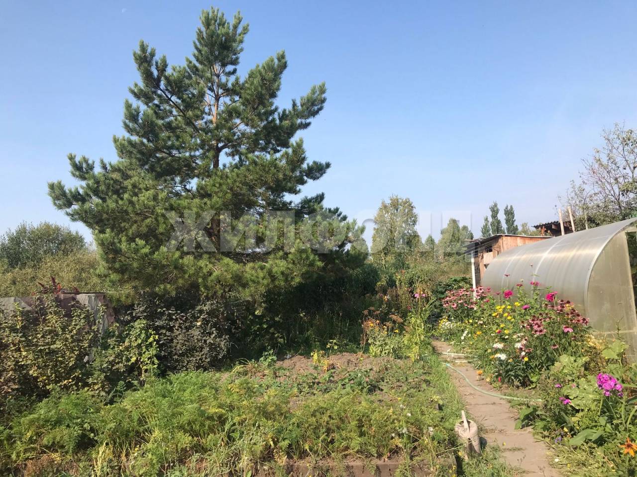 Участок отсыпан плодородной землёй, есть теплица, туалет и хозблок.