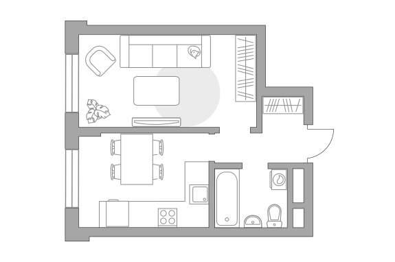 Жилая площадь 26.92 м2, кухня 12.04 м2. Площадь комнат: 16.20/10.72 м2, черновая отделка, окна выходят на улицу.