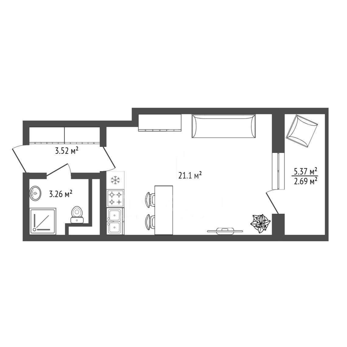 В продаже уютная просторная квартира-студия в Кудрово