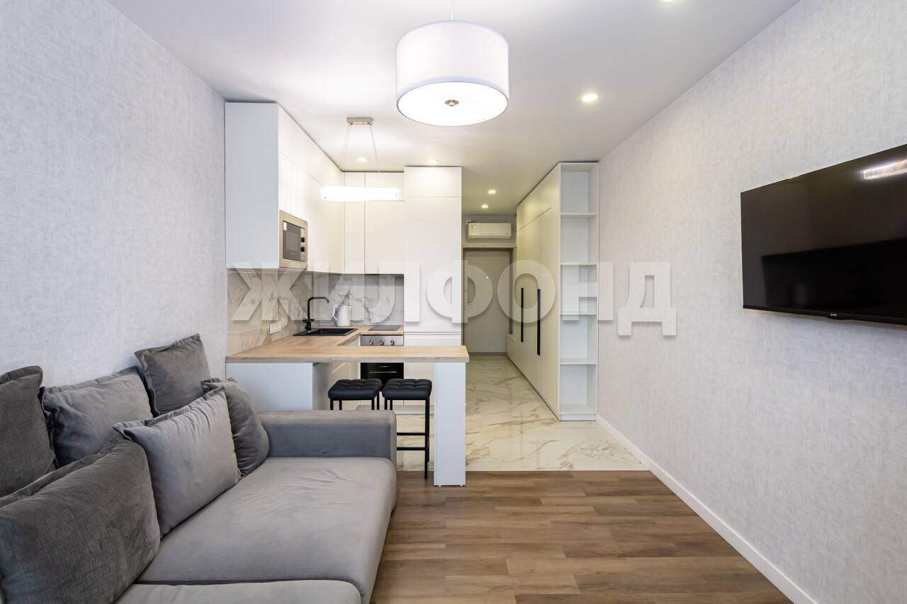 Продается стильная квартира-студия с дизайнерским ремонтом на комфортном 8 этаже в в жилом комплексе бизнес-класса Новосибирска.