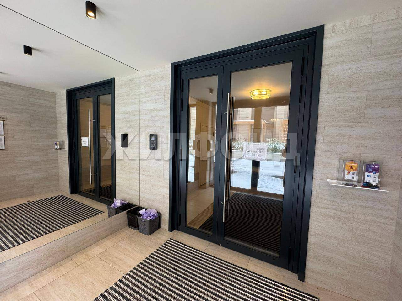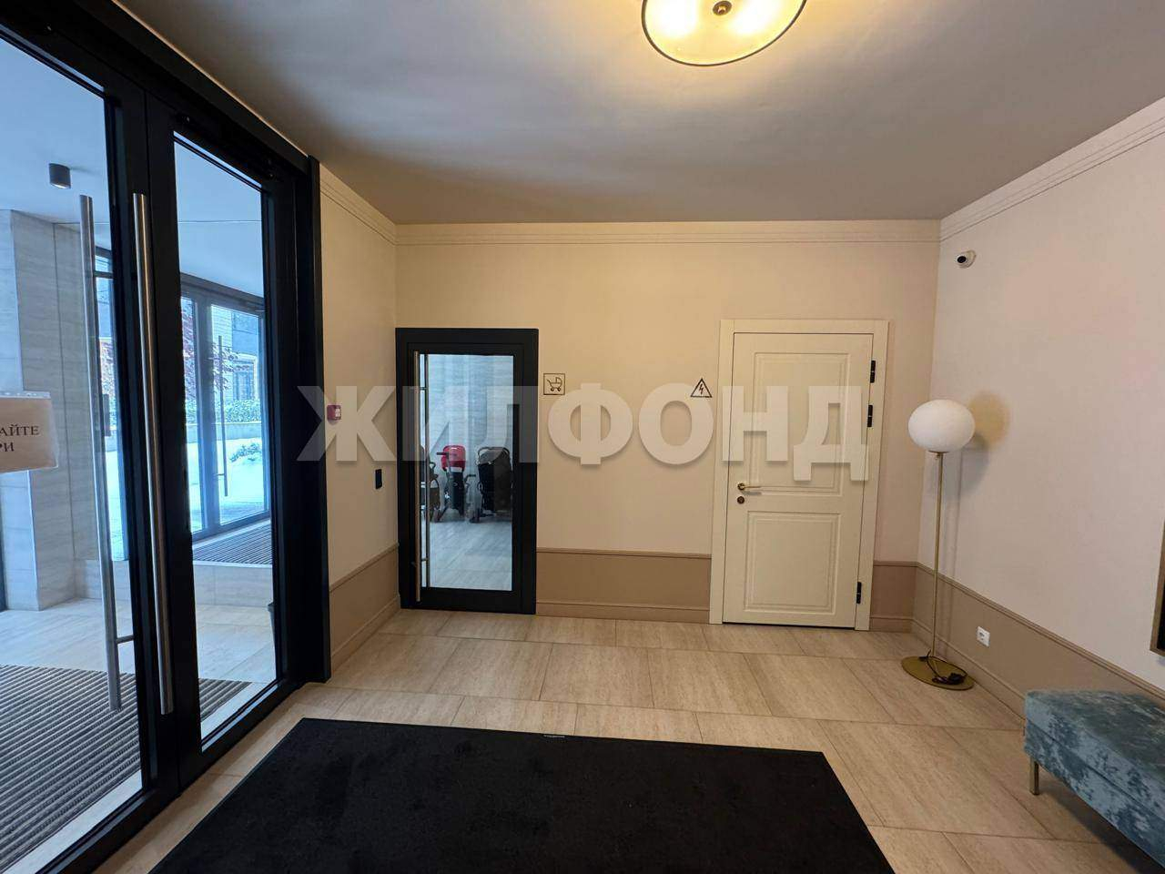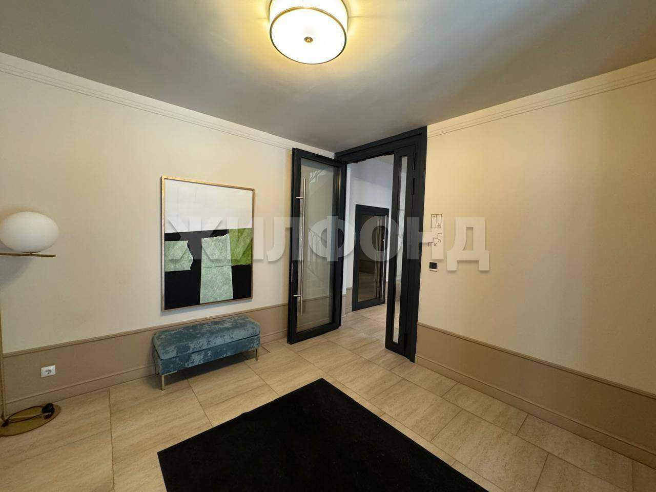 Высококлассная отделка холлов: sоft-tоuсh двери с итальянской фурнитурой, бельгийское ковровое покрытие, приглушенный свет и авторские картины на стенах.