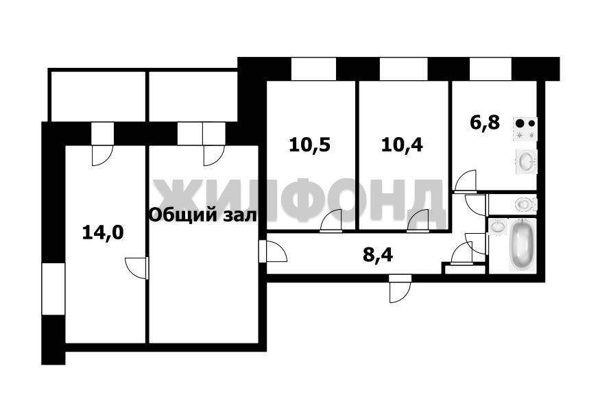 Комнаты разделяет зал, который является местом общего пользования, где никто не проживает.