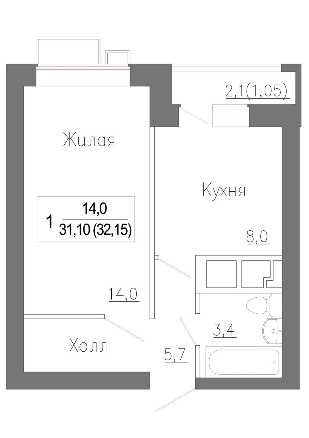 | Площадь кухни: |
