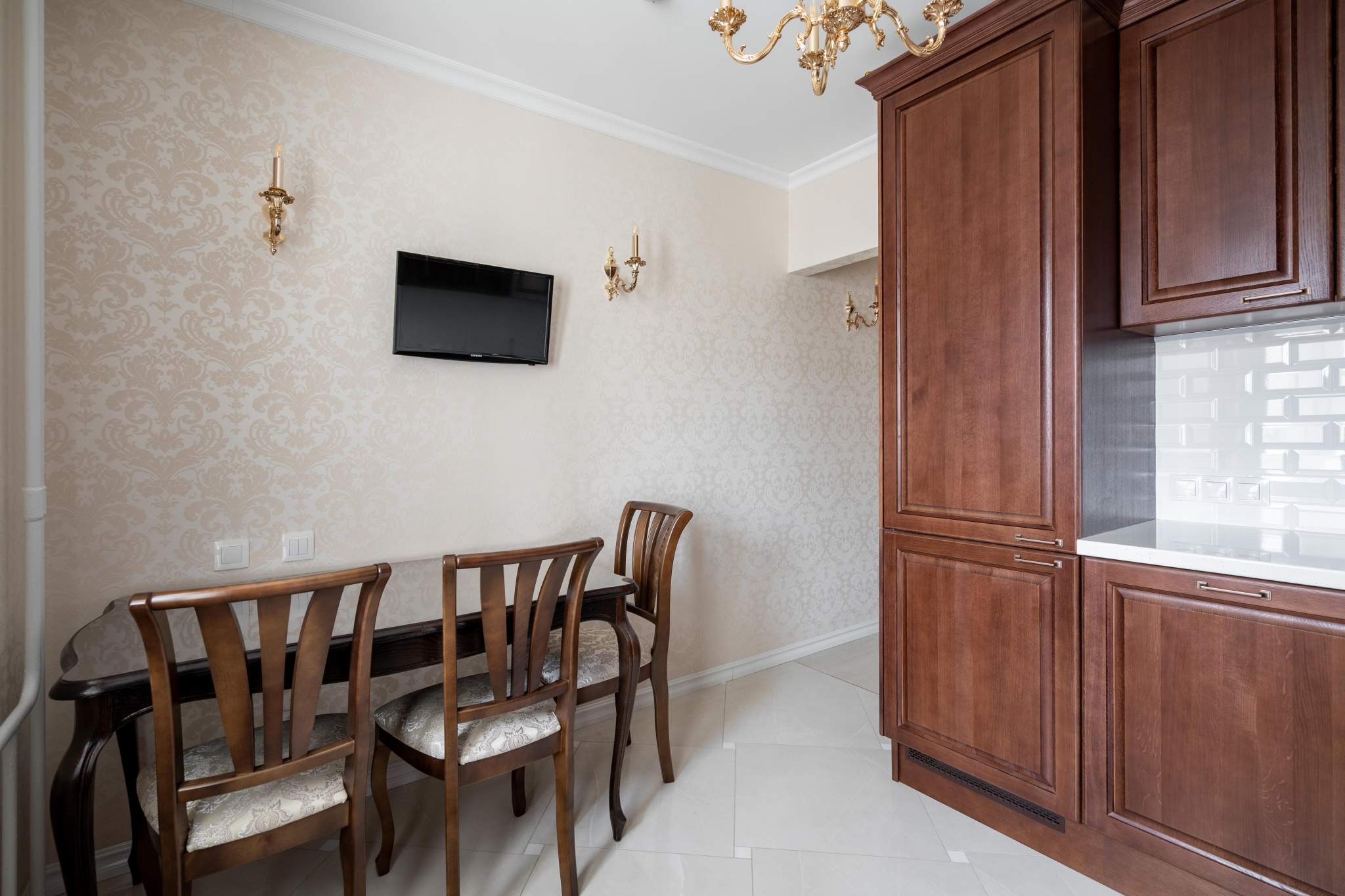 - В квартире два телевизора, плита, вытяжка, микроволновая печь, духовой шкаф, холодильник