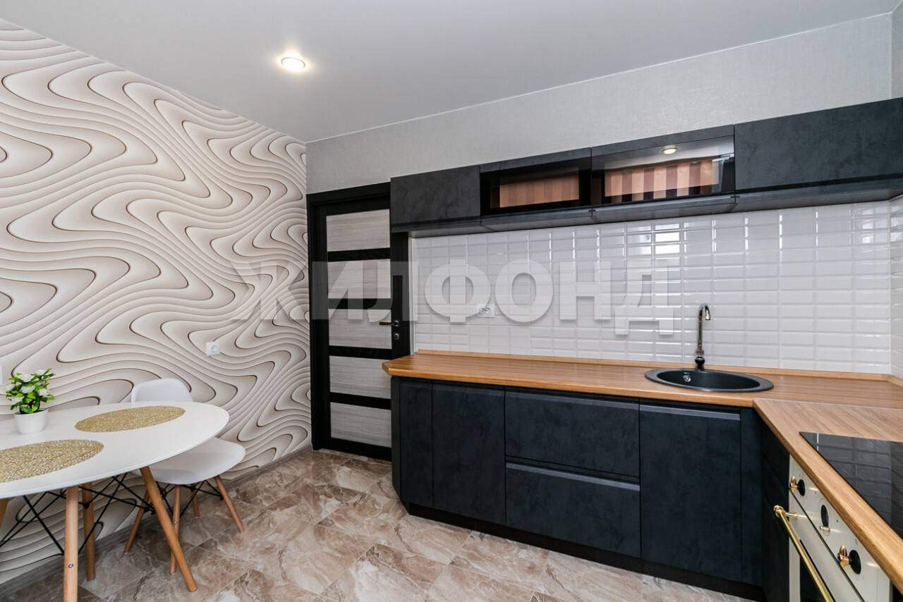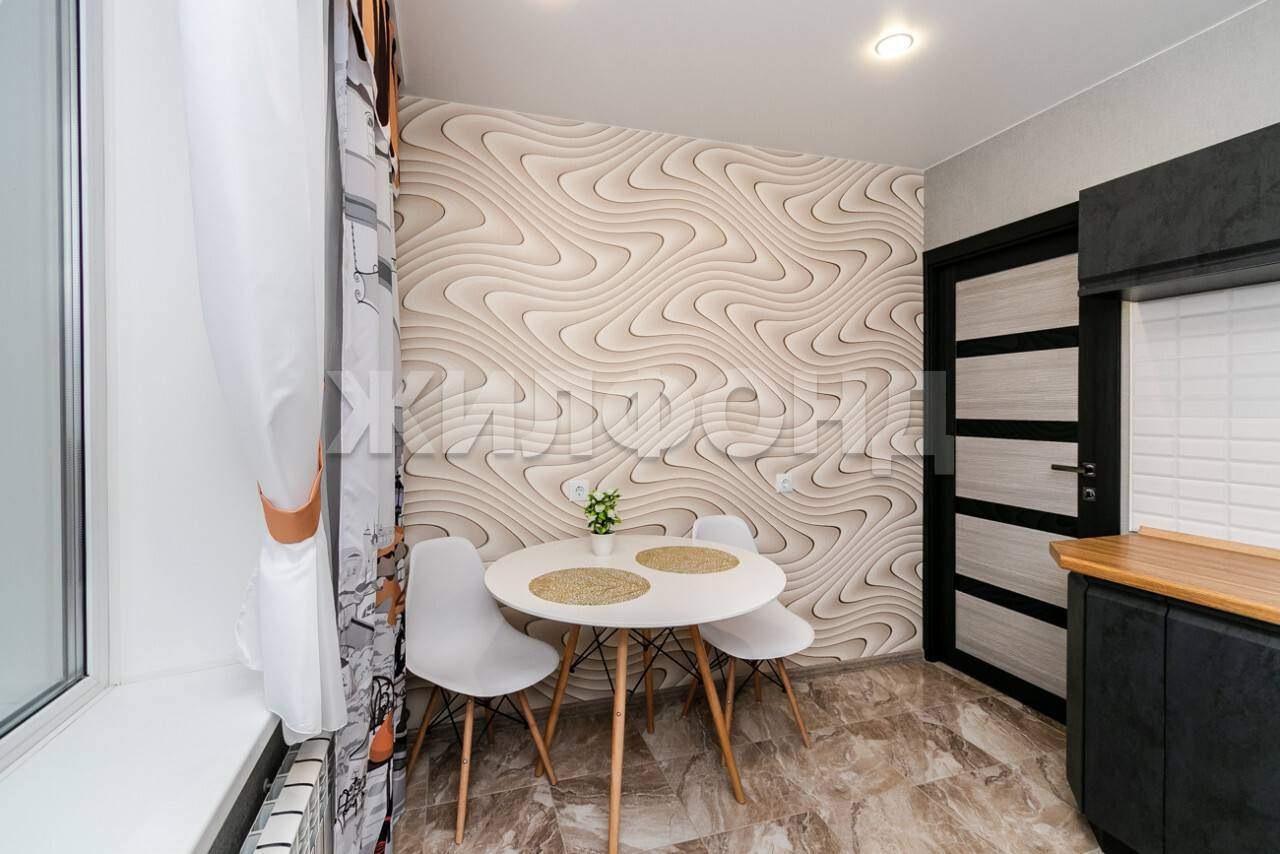 По всей квартире натяжные потолки Сатин фирмы Версус со встроенными светильниками. На полу спальни и зала ламинат класс 33, в коридоре и кухне керамогранит Гарда. На стенах антивандальные, долговечные обои горячий флизелин фирмы Аrtех, наклеенные на хорошо подготовленные стены. Двери межкомнатные качественные с алюминиевой кромкой и магнитными замками фирмы Орtimа Роrtе. Гардины, шторы, техника, а также предметы интерьера входят в стоимость квартиры.