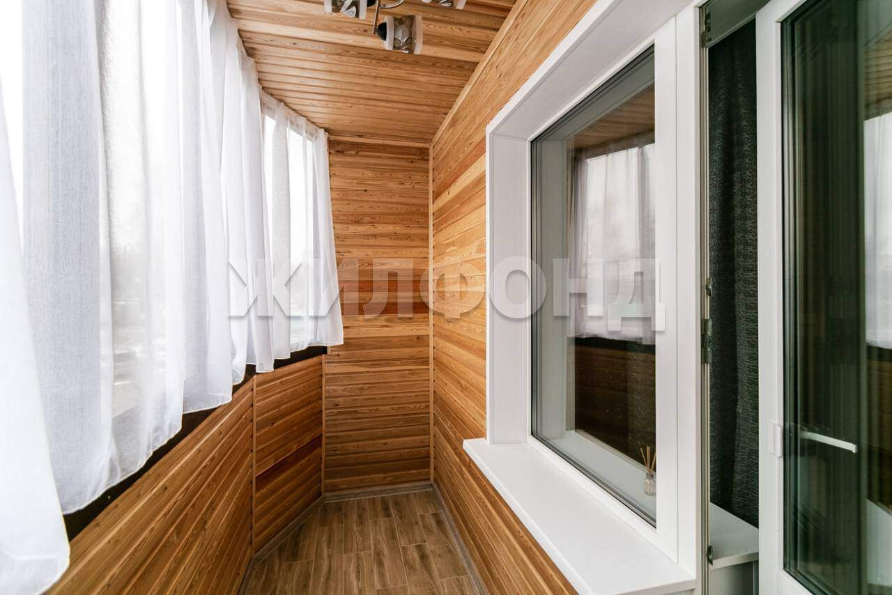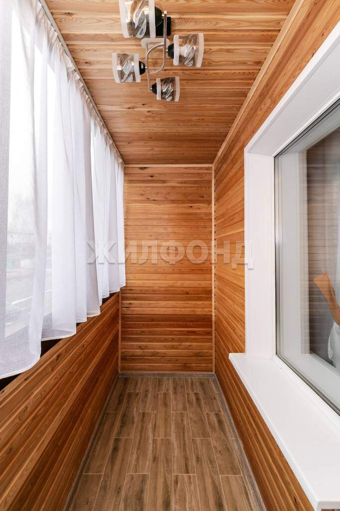 Выход на балконы из кухни и спальни. Балконы застеклены, отделаны вагонкой из лиственницы, которая не боится влаги, перепадов температур, долговечна в эксплуатации. Пол балкона утеплен, выложен плиткой. На балконы выведено освещение (люстры) , отделка окон подоконником и пластиковыми откосами, на окнах шторы.