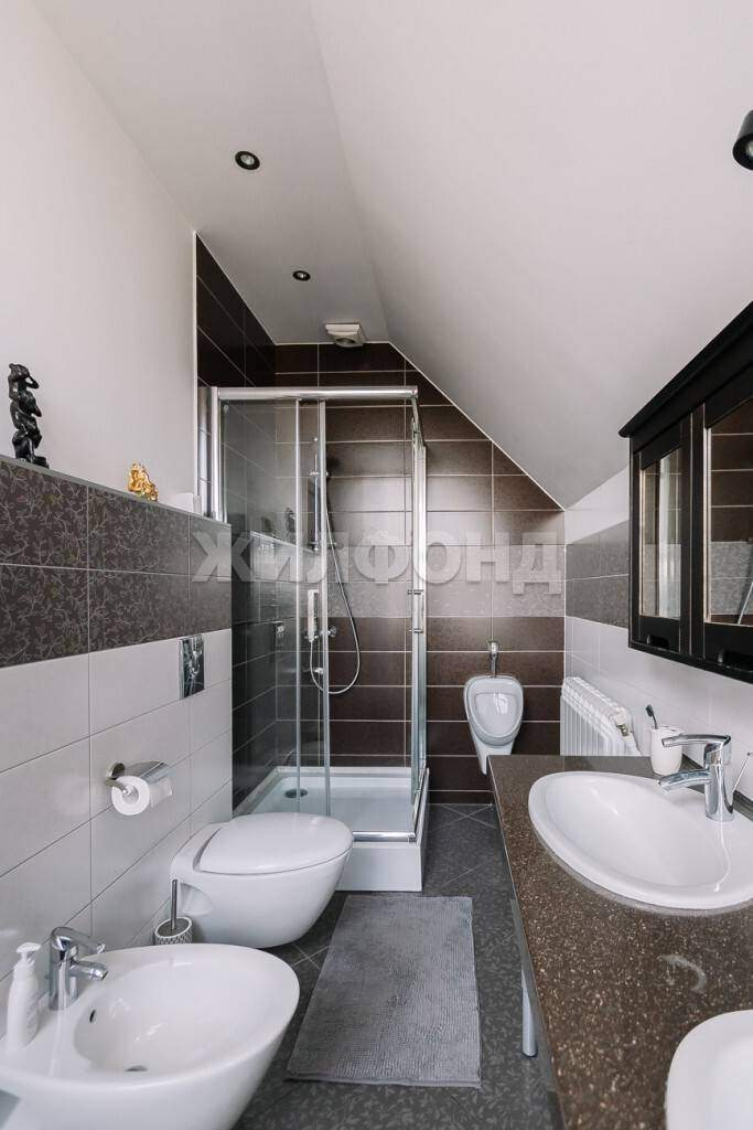 На втором этаже три спальни, из них две мастер спальни с антресолями, возможно использовать это дополнительное пространство как кабинет. Спальни оборудованы гардеробной, что избавляет от необходимости приобретать доп мебель. Вместо громоздких шкафов есть отдельное пространство для вещей. Одна спальня имеет выход на террасу, где есть барбекю, можно проводить летние вечера в кругу семьи и жарить мясо или загорать в солнечный день. Благодаря высоким потолкам (7 метров) оконные пролеты в помещениях больше. За счет увеличения площади остекления в комнатах больше естественного света.