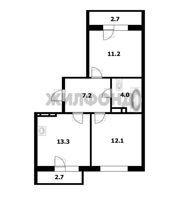 2 комн. квартира по ул. Василия Клевцова. Общей площадью: 53.14 кв.м.