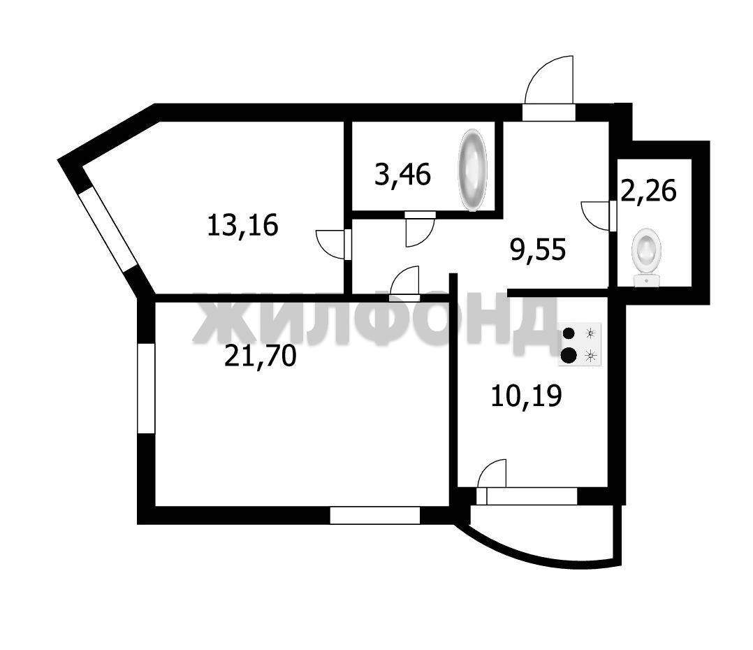-кухня-столовая (10м2) с выходом на застекленную лоджию (2,4м2) . При желании кухню можно соединить с гостиной.