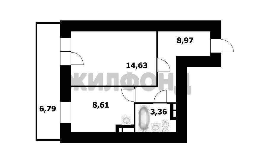 Просторная кухня 8,61 кв. м и светлая комната 14,6 кв.м.
