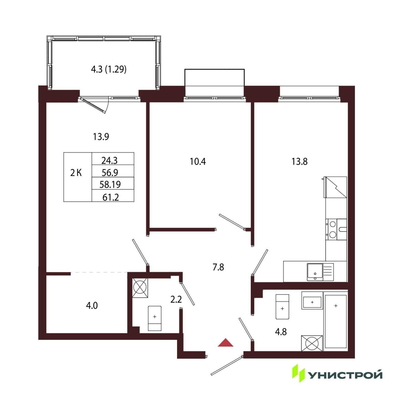 Продается 2-комн. квартира, площадью 57.4 м2. Жилая площадь 24.5 м2, кухня 15 м2. Площадь комнат: 12.50/12.00 м2. Раздельных санузлов - 1. Квартира располагается на 3 этаже 5-этажного дома в ЖК Лисино. , сдача дома - IV квартал 2027 года Позвоните и узнайте условия покупки прямо сейчас! |