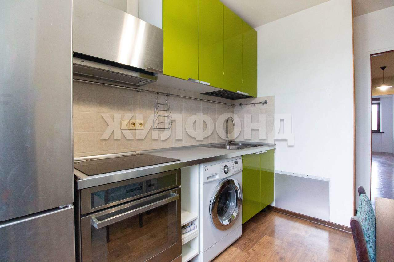 Из мебели остается кухонный гарнитур, мебель на кухне и в прихожей. Между комнатами просторная гардеробная.