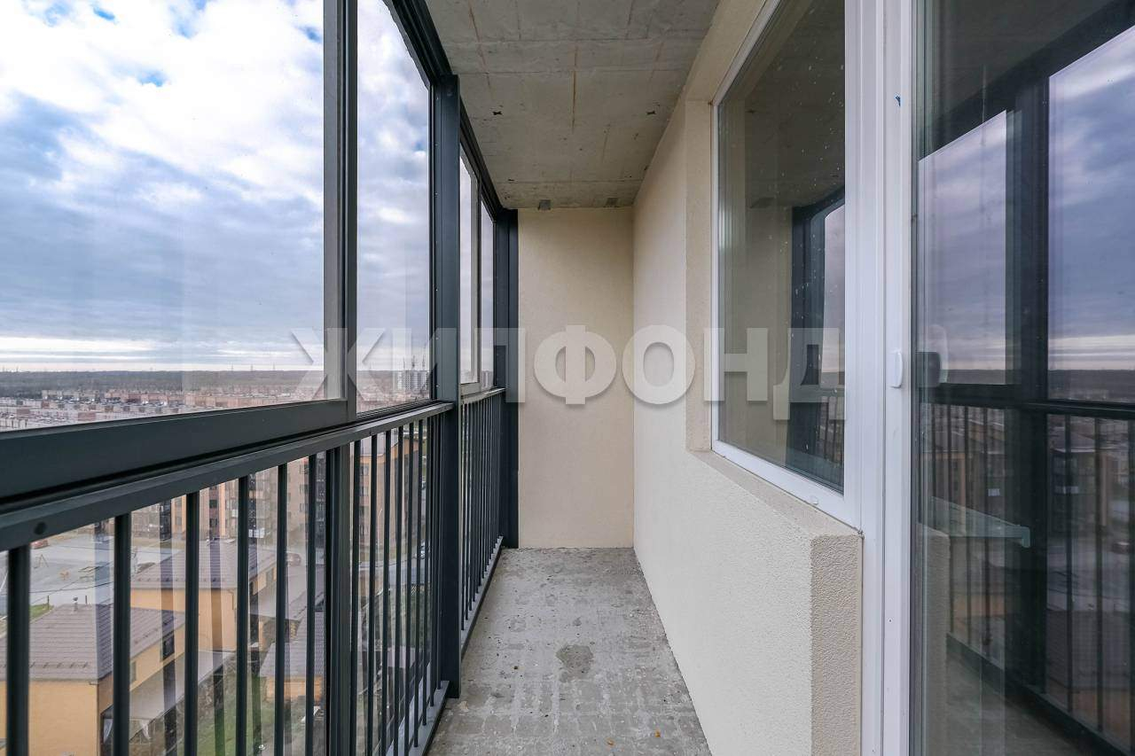 Балкон 4 кв. м с панорамным остеклением, предусмотрена решётка для внешнего блока кондиционера.