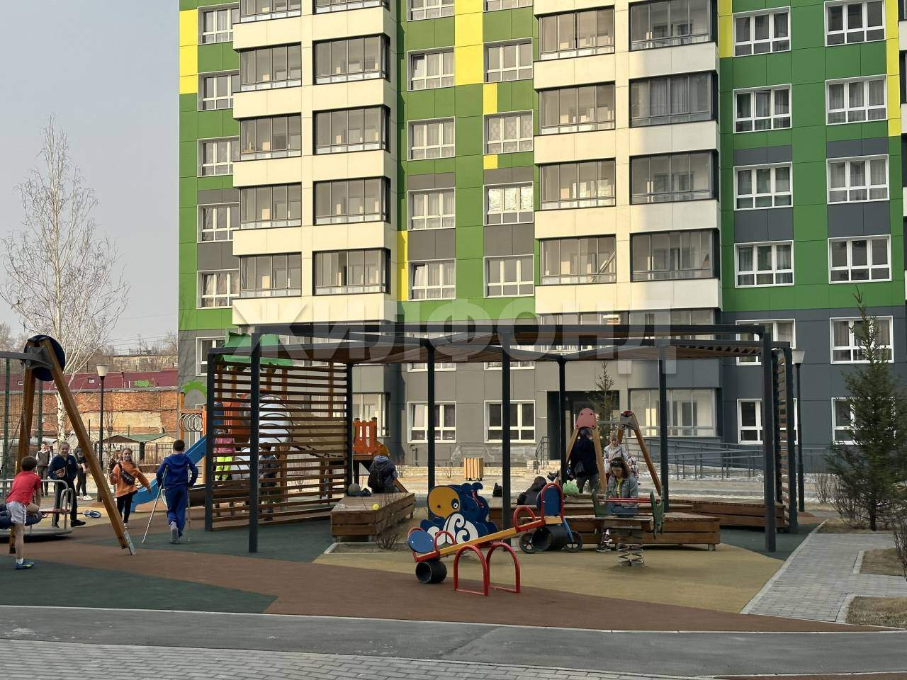 Благоустроенные дворы, много парковочных мест, видеонаблюдение, современная детская площадка.