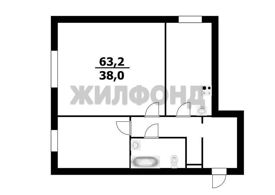 2 комн. квартира по ул. Виктора Шевелева. Общей площадью: 63.20 кв.м.