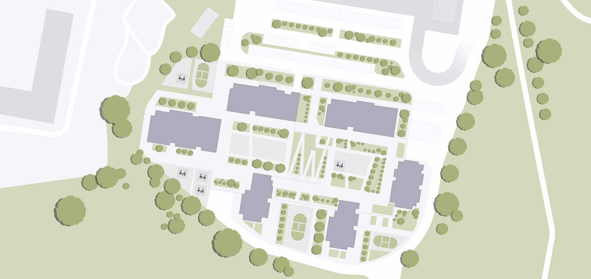 Архитекторы разработали концепцию, которая позволяет гармонично вписать проект в его природное окружение, используя оттенки белого, коричневого, терракотового цветов. Монолитные дома спроектированы с качественными фиброцементными фасадами. Просторные лоджии и панорамное остекление наполняют квартиры светом и воздухом и позволяют любоваться пейзажами.