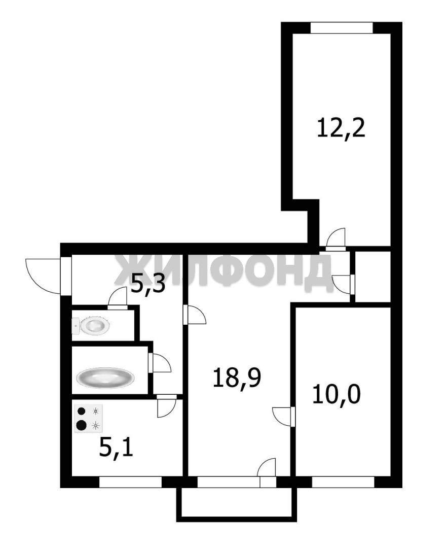 3 комн. квартира по ул. Богдана Хмельницкого. Общей площадью: 55.00 кв.м.