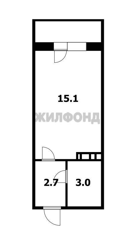 Жилая комната 15,1 кв.м. , коридор 2,7 кв.м. , ванна с сан. узлом 3 кв.м.