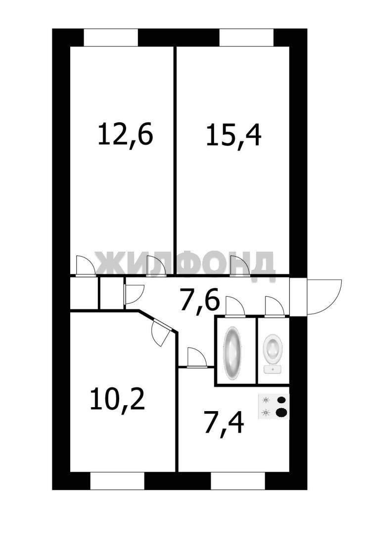 3 комн. квартира по ул. Новосибирская. Общей площадью: 58.00 кв.м.