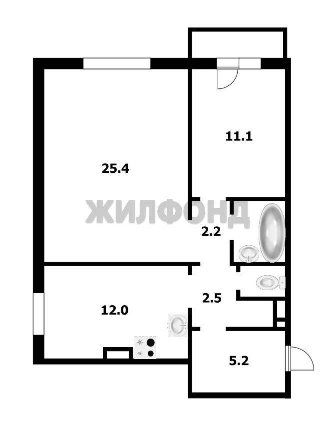 В квартире просторная кухня 12 кв. , жилая комната 11 кв. и шикарная гостиная 25,35 кв. Санузел раздельный, кафель до потолка.