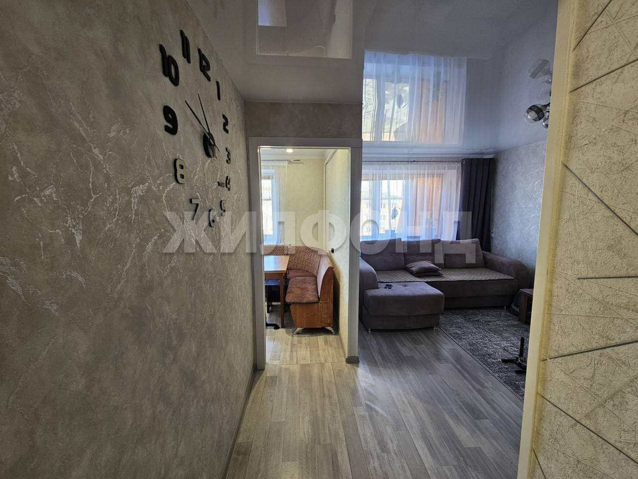 Жилье в отличном состоянии, сделан качественный ремонт. В квартире установлены новые окна, сантехника и электропроводка. На полу лежит красивый ламинат, который создает уютную атмосферу. Все комнаты просторные и светлые, благодаря большим окнам.