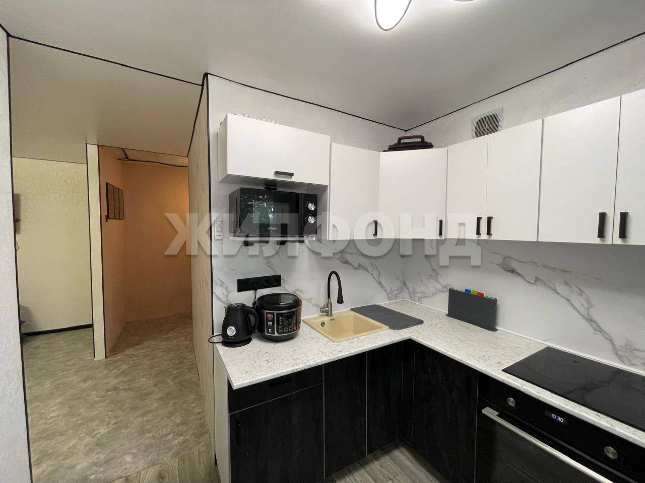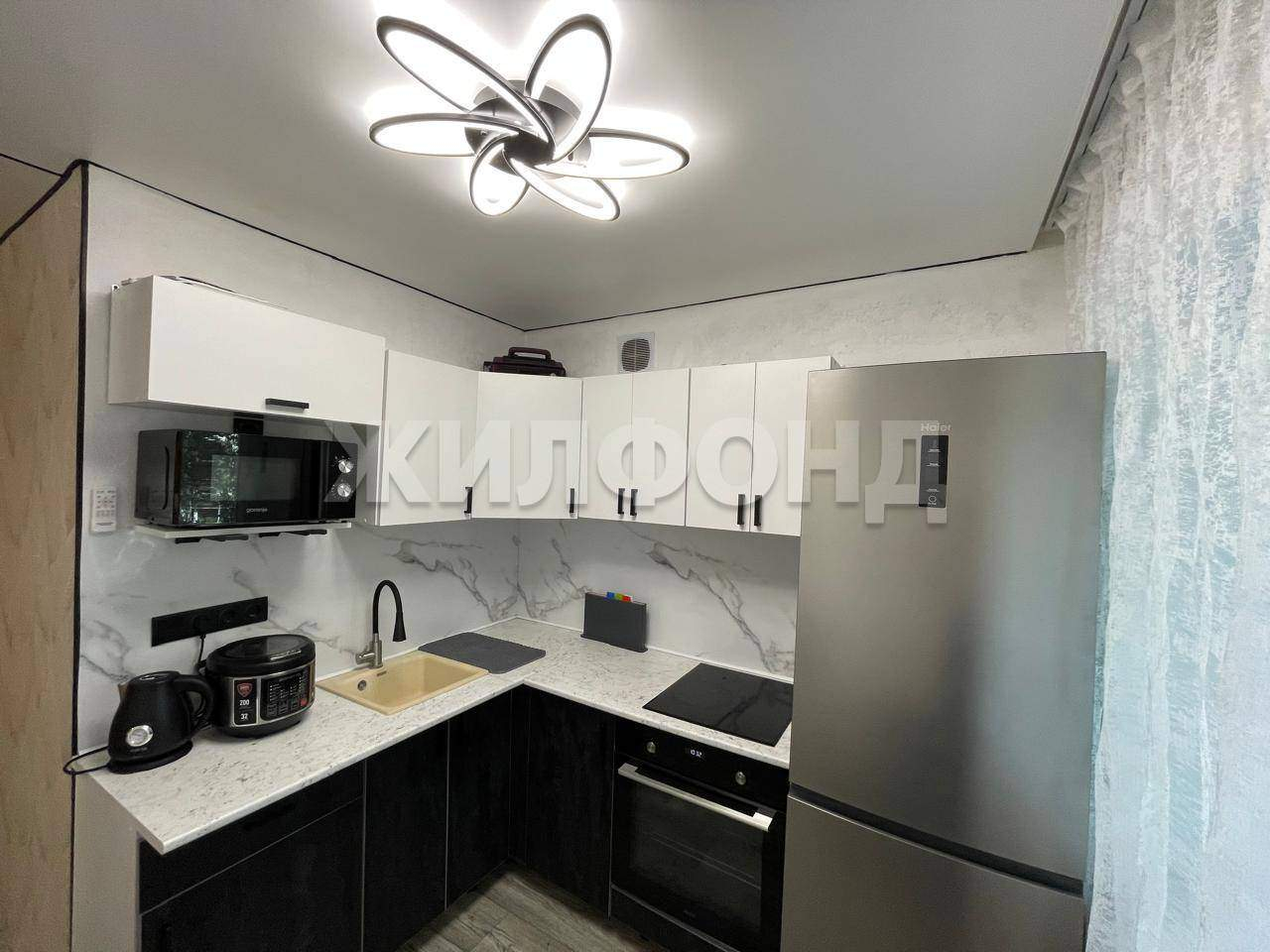 В квартире сделан хороший ремонт, балкон застеклен, кухонный гарнитур останется в качестве бонуса новым жильцам.