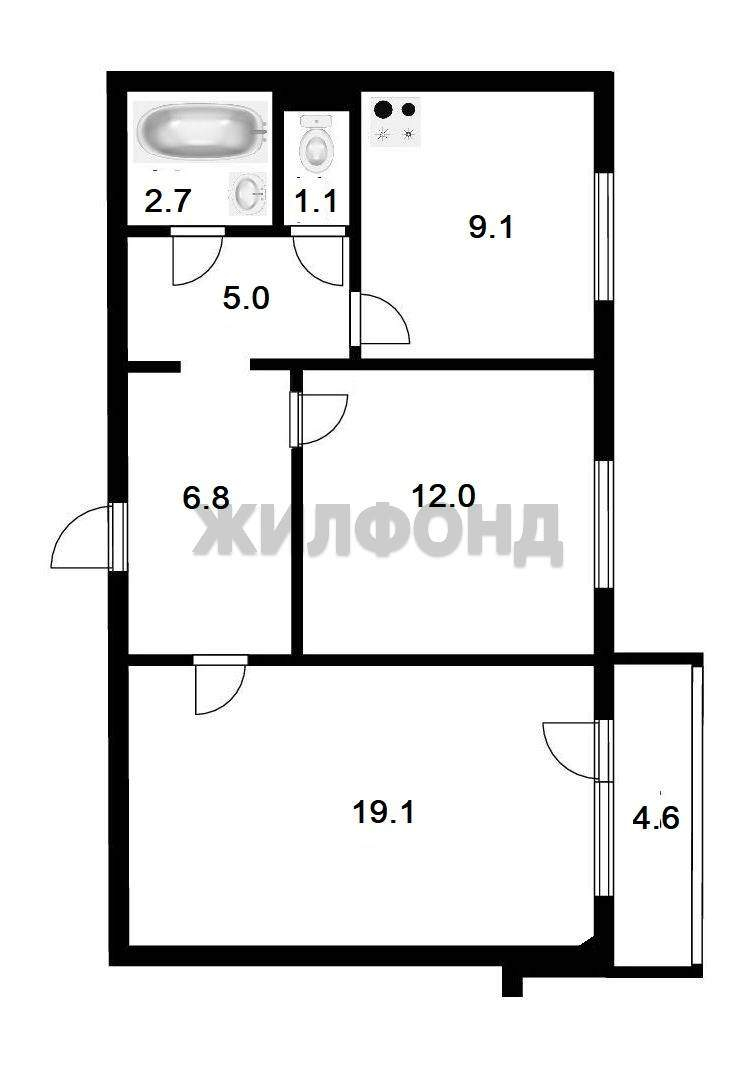 2 комн. квартира по ул. Колхидская. Общей площадью: 55.80 кв.м.