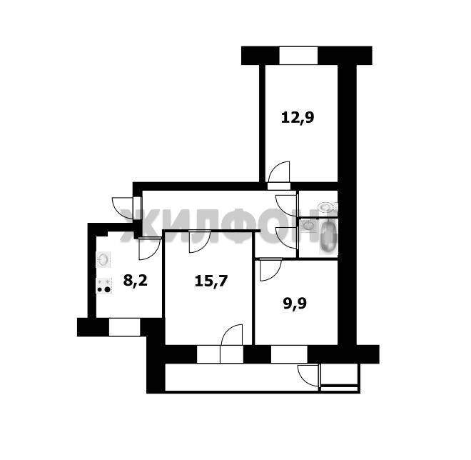 В продаже просторная трехкомнатная квартира улучшенной планировки в городе Новосибирск на улице Молодости, дом 44. Общая площадь квартиры составляет 64.5 кв.м. , расположена на втором этаже девятиэтажного дома.
