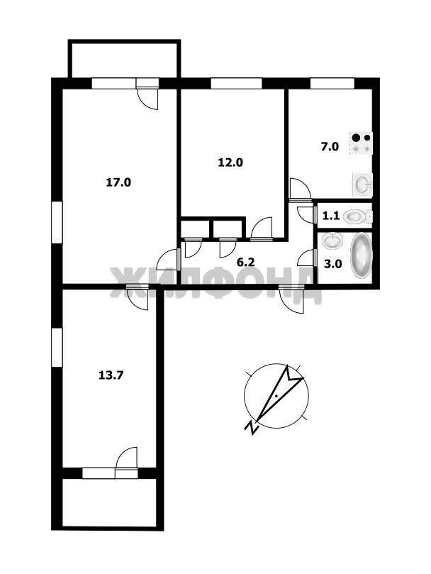 3 комн. квартира по ул. Зорге. Общей площадью: 60.00 кв.м.