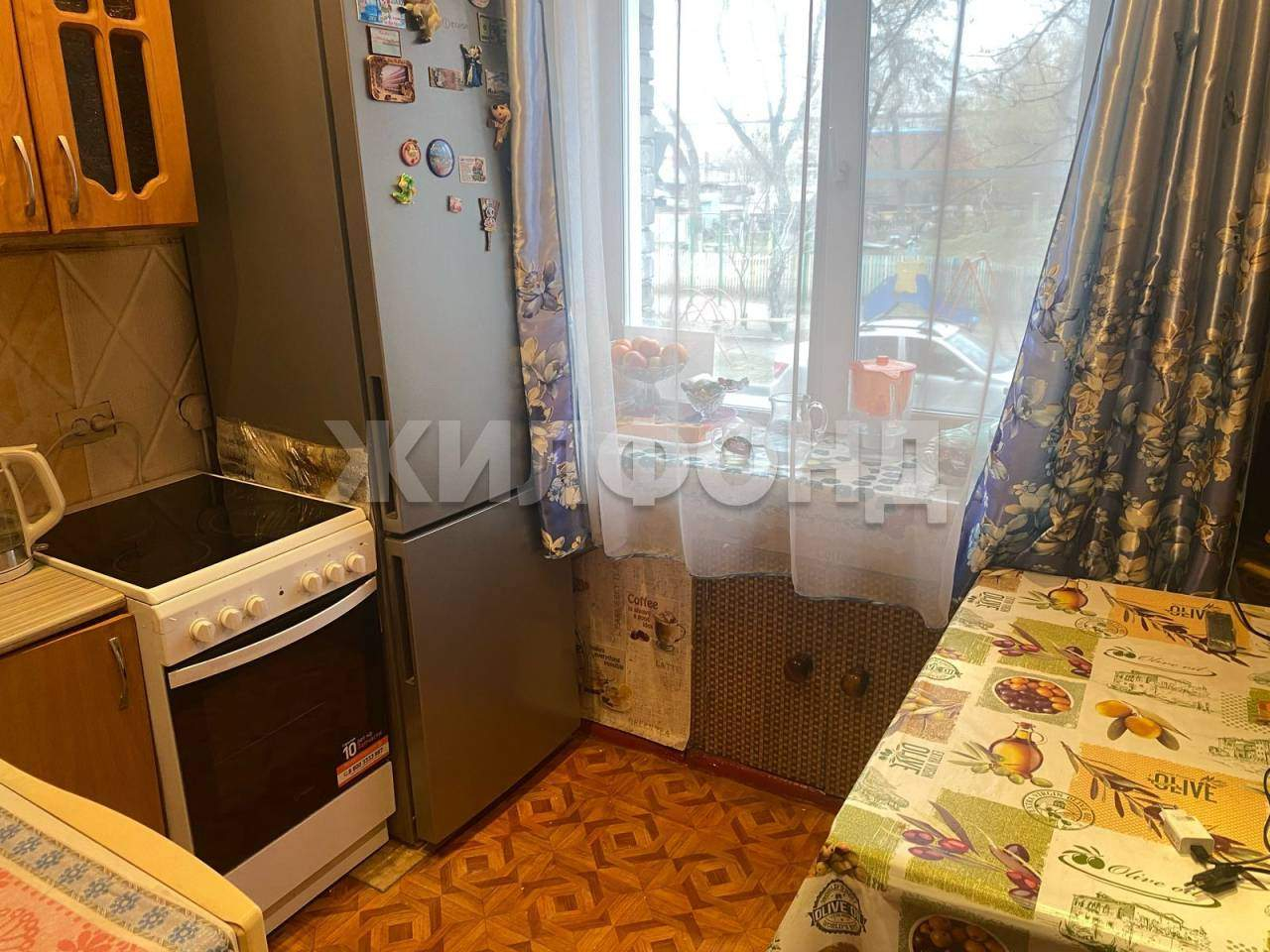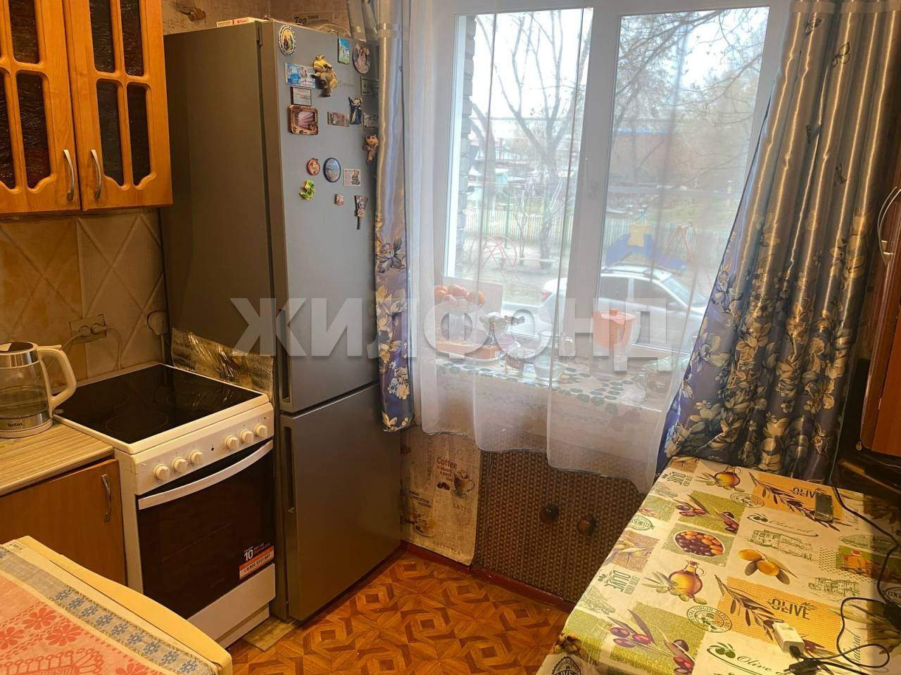 Тихий и зеленый двор, окна выходят на разные стороны .