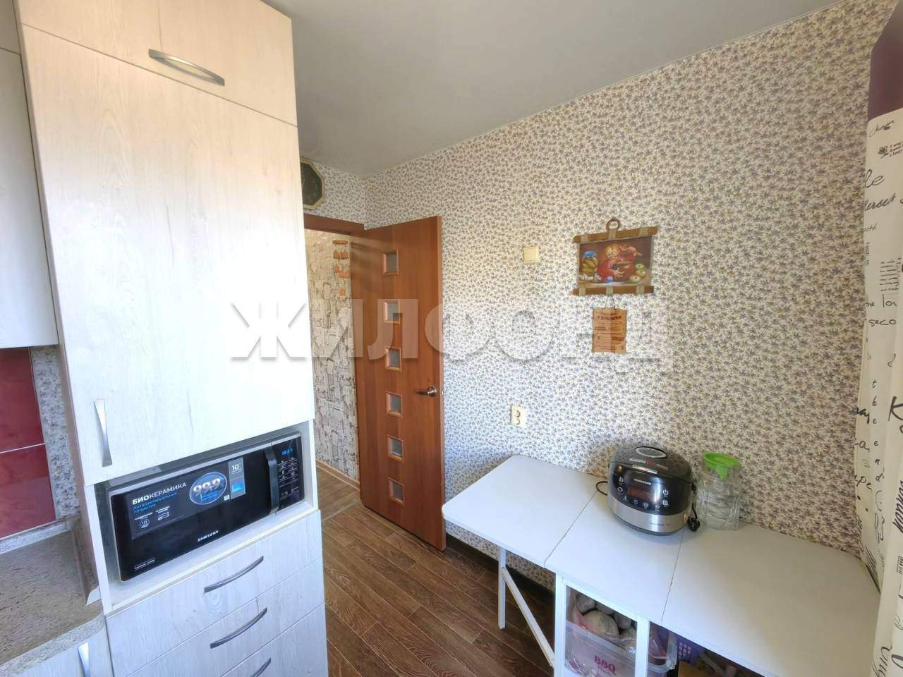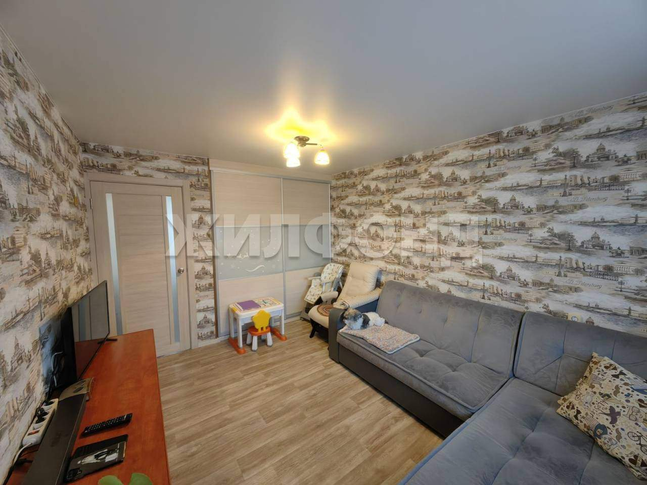 В квартире остаётся встроенная кухня с техникой (без холодильника) , шкаф в спальне, гардеробная в гостиной, стиральная машина.