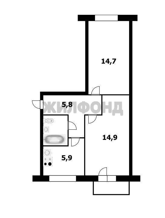 2 комн. квартира по ул. Забалуева. Общей площадью: 44.70 кв.м.