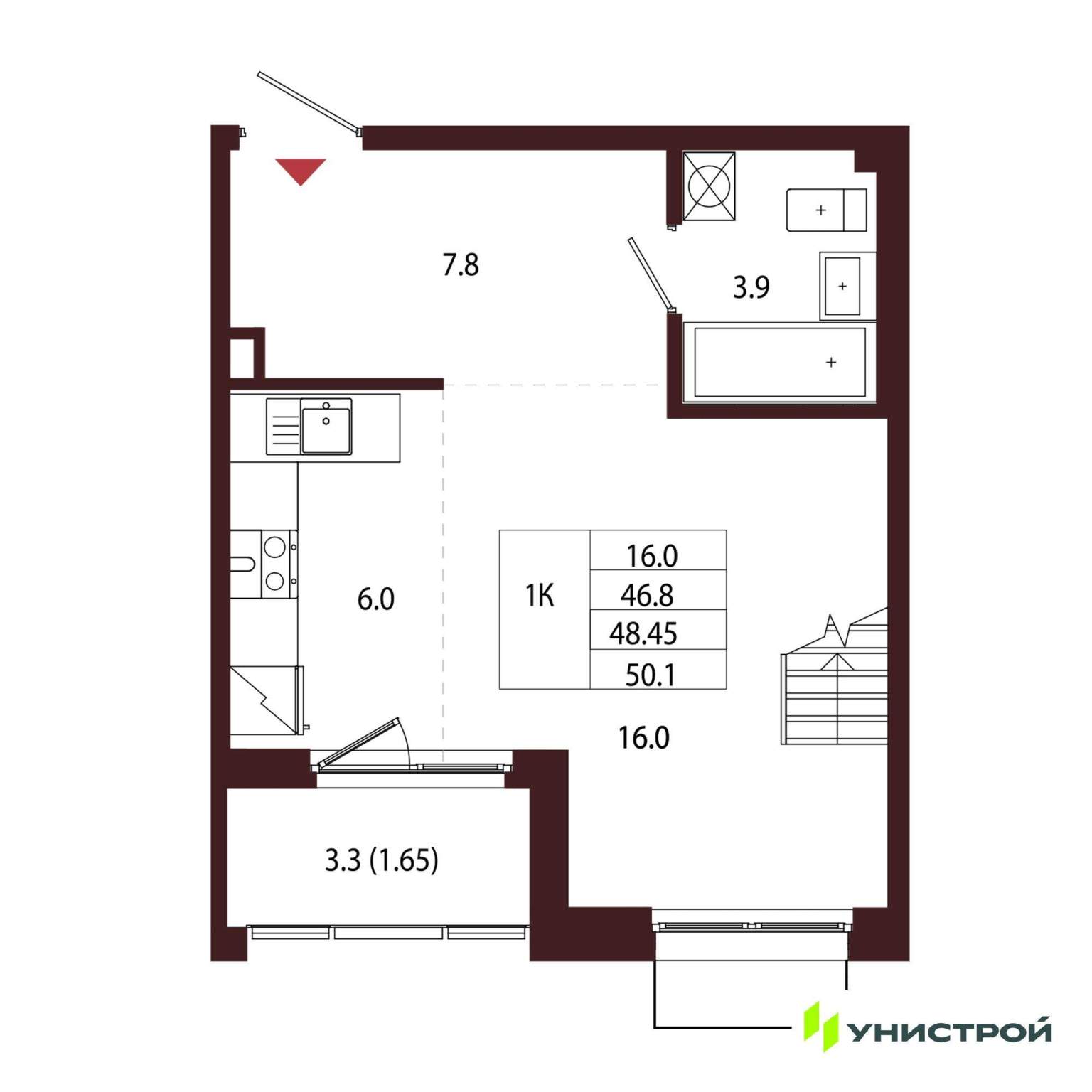 Жилая площадь: 32.98